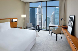 Les Deluxe Room mesurent environ 35 m2. Équipées d’un lit king-size, elles offrent une vue sur les Jumeirah Lake Towers.