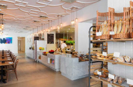 La Serre offre un cadre inspiré des cafés parisiens. Ouvert toute la journée, il fait office de bistro et de boulangerie.