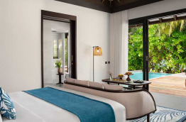 7 Ocean Pool Villas d’environ 133 m2 situées dans un coin calme au Sud de l’île, bénéficient d’une magnifique vue surélevée sur la mer. Chacune est équipée d’une salle de bains semi-extérieure avec douche et baignoire, ainsi que d’une douche extérieure dans un jardinet qui donne sur votre piscine privée. Elles ne bénéficient pas d'un accès au lagon depuis la terrasse.