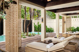 6 Beach Pool Villas d’environ 139 m2 sont les plus vastes de l’hôtel. Construites en 2022, elles offrent une douche extérieure, ainsi qu’une grande terrasse avec piscine privée et vue sur la mer. Elles sont situées directement sur la plage et bénéficient donc d’un accès direct au lagon depuis la terrasse.