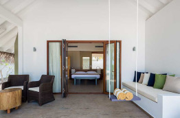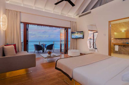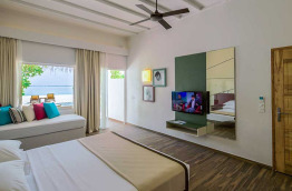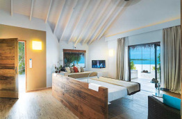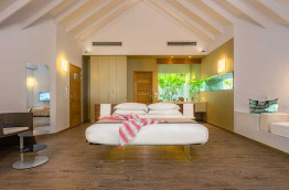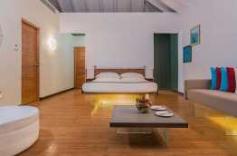 Cocoon Maldives compte au total 150 villas et suites, réparties sur les plages de l’île ou le long du ponton sur pilotis. Elles sont décorées de façon moderne : le design du lit est très original, de telle sorte qu’il semble flotter au-dessus du sol.