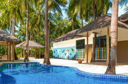 Cocoon Maldives est doté d’une grande piscine, ainsi que de chaises longues et parasols sur la plage la plus au Nord de l’île.