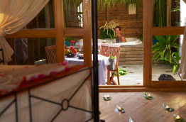 90 Beach Bungalow (54 m2) sont identiques aux Garden Bungalows dans les aménagements, ils sont situés sur la plage Nord de l’île et disposent d'un lit à baldaquin.