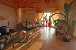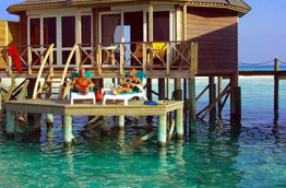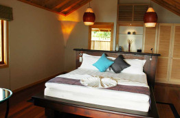 49 Sangu Water Villa (70 m2), construites sur pilotis au-dessus du lagon. Elles ont une salle de bains fermée, terrasse aménagée pour vos bains de soleil, lit à baldaquin et accès direct à la mer. Elles ont un petit coin salon et offrent une vue panoramique sur la mer ainsi que les services des Beach Villas. Les enfants ne sont pas acceptés.