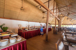 Le seul restaurant est installé en bord de plage, le Ara Iru, qui signifie soleil levant en maldivien. Il est ouvert pour tous les repas et propose majoritairement une restauration sous forme de buffet, mais également des dîners servis à table. Des dîners barbecue sont régulièrement organisés sur la plage.