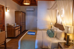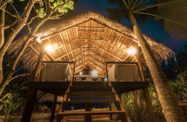 L’île est composée de seulement 36 bungalows de style maldivien, groupés par deux, et harmonieusement répartis dans une superbe végétation tout autour de l’île, à proximité de la plage. Bien qu’ils soient groupés, votre intimité est préservée : seules les salles de bains sont mitoyennes.
