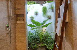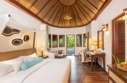 Les bungalows aux toits de palme sont tous équipés de ventilateurs et de l’air conditionné, d’un minibar, d’un nécessaire à thé et café, d’un bureau, d’un coffre-fort et de l’accès internet Wi-Fi. Les salles de bains sont ouvertes sur l’extérieur pour mieux profiter de la nature et de la douceur des températures tropicales.