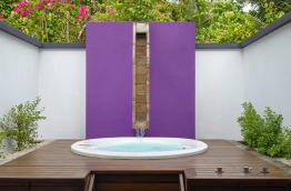 19 Beachfront Jet Pool Villa, plus grandes, disposent d’un bain à jets dans le jardinet privé.