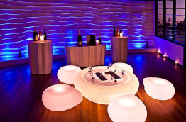 4 bars : Water’s Edge, le long de la plage, offre une vue superbe sur le lagon, parfait pour un verre en journée ou après dîner. C’est ici qu’a lieu tous les soirs une animation musicale. Reflections, situé près de la piscine à débordement, est interdit aux enfants. Fluid, près de la piscine principale, sert toute la journée de délicieux jus de fruits frais, et des snacks à toute heure. Pour déguster une coupe de champagne avant le dîner ou en soirée, rendez-vous au Bubble Lounge.