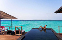 5 Infinity Water Villas de 155 m2, plus spacieuses à l’extérieur avec de plus grandes terrasses sur deux niveaux, et notamment une piscine extérieure privée. Ce sont les plus belles villas sur pilotis de l'île.