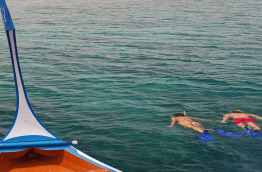 Le lagon est assez grand et, bien qu’on puisse y croiser pas mal de poissons, il est préférable d’aller faire de la plongée libre sur le récif au bout de la jetée des bungalows sur pilotis, ou au départ de la jetée du centre de plongée.