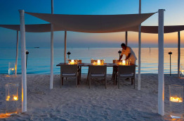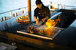 Vela, le restaurant principal, sert une cuisine internationale sous forme de buffet. Etesian, restaurant à la carte, offre une cuisine méditerranéenne dans un cadre verdoyant à l’intérieur de l’île. Sand, restaurant sur la plage, face au lagon, propose des spécialités de grillades, de currys indiens et autres plats orientaux. Teppanyaki, le restaurant japonais, est installé sur pilotis au-dessus du lagon.