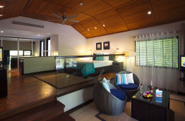 47 Deluxe Villas de 75 m2 offrent un décor sobre et minimaliste, avec de larges ouvertures laissant entrer la lumière naturelle. Elles sont nichées dans les jardins, à deux pas de la plage. Chaque villa bénéficie d’un jardinet privatif, et d’une salle de bains avec une douche extérieure et intérieure. Il est d’ailleurs possible de réserver deux Deluxe Villas communicantes, pour créer une Two-Bedroom Deluxe Villa.