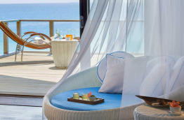 24 Water Villas de 112 m2, largement ouvertes sur l’extérieur, se trouvent le long de la jetée Ouest. Vous pourrez observer la mer depuis votre lit, et profiter de votre généreuse terrasse.