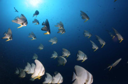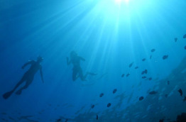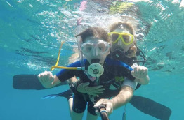 Il est possible de pratiquer le snorkeling directement depuis la plage ou face à votre villa sur pilotis. L’équipement vous sera prêté gracieusement à votre arrivée. Le récif se trouve à seulement 20 mètres du bord et est accessible en quelques coups de palmes, ou depuis la jetée. Il fait le tour de l’île et abrite de superbes espèces sous-marines. On peut dire qu’il est plutôt préservé et moins affecté que certains autres par le blanchiment du corail. Le récif est plein de vie, ça grouille de nuées de poissons tropicaux multicolores de toutes tailles et guettez bien car on aperçoit régulièrement des tortues et des raies-aigles.