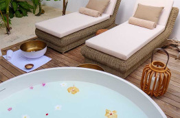 17 Water Villas et 16 Sunset Water Villas identiques, seules la vue et l’orientation diffèrent. Elles font environ 60 m2, et offrent en plus une terrasse de 45 m2 avec un accès direct à la mer.