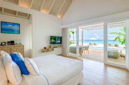 5 Deluxe Beach Suites with Pool encore plus spacieuses : elles mesurent environ 115 m2 et offrent une terrasse de 60 m2 avec piscine. Elles sont composées d’un espace avec salon, salle à manger et d’une chambre double avec dressing et salle de bains.