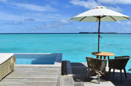9 Water Villas with Pool avec en plus une petite piscine privative, sur la terrasse face à la mer.