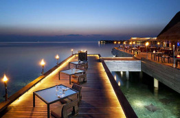 Côté bars : Wet, en bord de piscine, où vous pourrez siroter un jus de fruits en étant dans l’eau fraîche. Sip, sur pilotis au-dessus du lagon, le cadre et l’ambiance lounge sont rêvés pour les cocktails d’avant dîner.