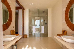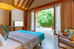 Les 47 Beach Pool Villas sont similaires aux précédentes, mais légèrement plus spacieuses (environ 155 m2). Leur point fort : chacune dispose d’une piscine privée, à seulement quelques pas de la plage. Elles sont situées sur la plage Sud ou sur la partie Sud-Est proche du spa et du centre de plongée.