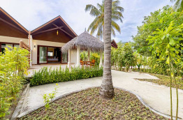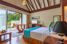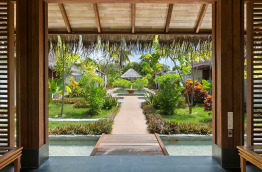 25 Garden Villas sont nichées dans les jardins, légèrement en retrait de la plage. Elles n’ont pas le charme des villas proches de l’eau. D’une superficie d’environ 110 m2, elles disposent d’un lit king-size, d’une salle de bains semi-extérieure et d’une grande terrasse agréable à toute heure de la journée. Ces villas peuvent accueillir jusqu’à 2 adultes et 2 enfants, et certaines sont communicantes : il est possible d’en louer deux, côte à côte, pour créer un plus grand hébergement.