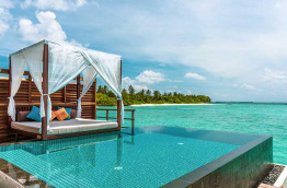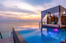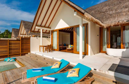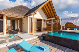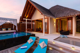 Les 9 Sunrise Ocean Pool Villas et les 9 Sunset Ocean Pool Villas mesurent environ 160 m2. Également construites sur pilotis sur le ponton Sud, elles sont en plus dotées d’une petite piscine privée donnant sur l’océan.