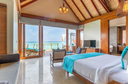 Plus récentes, les 12 Ocean Villas Infinity d’environ 150 m2 se trouvent sur l’autre ponton, au Sud de l’île, et sont les plus proches de la plage. Elles peuvent accueillir jusqu’à 2 adultes et 2 enfants, ou 3 adultes et 1 enfant.