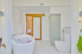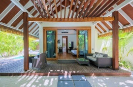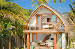 6 Beach Villas de 85 m2 sont situées sur la partie Ouest de l’île. La chambre est spacieuse, la salle de bains ouverte donne sur un jardinet extérieur, et comprend un bain à jets et une douche, ainsi qu’une douche extérieure dans le jardinet. La terrasse en bois est aménagée pour votre relaxation, face à la mer. Elle bénéficie d’une partie ombragée.
