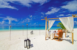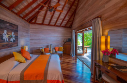 Seulement 39 bungalows sur cette petite île, tout pour faire de ce bijou une résidence de rêve pour vos vacances ou votre lune de miel. Le style est tout à fait local, laissant une grande part aux matériaux naturels, au sable et aux toits de palme.