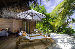 Sur la plage, la 3-Bedroom Beach Suite est construite sur deux étages et fait 180 m2. Elle est appelée Mirihi Maa Beach Suite, comprend trois chambres, deux salles de bains avec chacune une douche extérieure, une salle de bains intérieure, puis un grand salon-séjour, une kitchenette et un coin bureau.