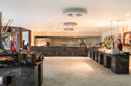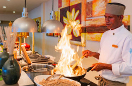 Le restaurant principal Dhonveli, les pieds dans le sable, vous surprendra par la qualité de ses buffets. Il sert une cuisine internationale et des produits locaux.