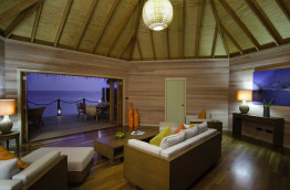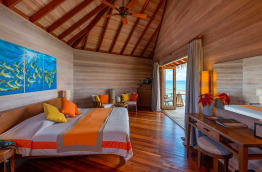 La 2-Bedroom Water Suite de 160 m2 sur pilotis, se nomme Fehurihi Water Suite et comprend deux chambres et un spacieux salon.
