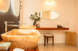 Les Beach Villas offrent une très grande salle de bains de plein air, alors que les Water Villas bénéficient d’une généreuse salle de bains avec un superbe panorama sur le lagon. Chaque villa possède une terrasse privée sur la plage ou sur le lagon selon la catégorie ; depuis les villas sur pilotis, vous bénéficiez également d’un accès direct au lagon depuis votre terrasse.