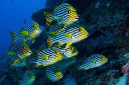 Le récif de corail est très facilement accessible à la palme, à quelques mètres de la plage ou depuis votre bungalow sur pilotis. Il n’est pas immense, mais il est d’une grande richesse et ravira les amateurs de plongée libre. Si vous avez envie de voir plus loin, le centre de plongée organise des sorties de snorkeling en bateau vers les récifs environnants.