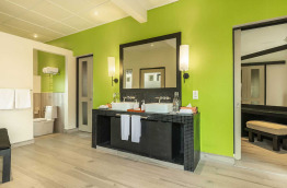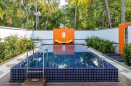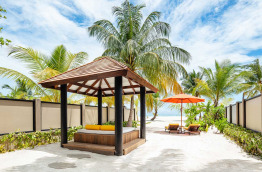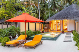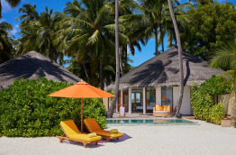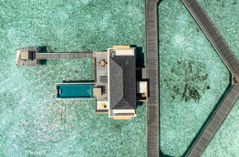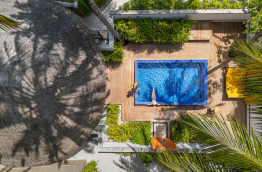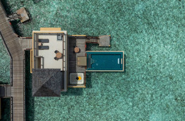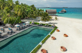 Pour les familles, 12 villas ci-dessus sont communicantes et forment ainsi les Beachfront Family Pool Villa comprenant deux chambres indépendantes avec une salle de bains chacune, et une piscine commune.