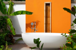 24 Beachfront Infinity Pool Villas de 104 m2 bénéficient en plus d’une petite piscine de 6 m de long devant la villa, et d’une baignoire pour deux dans le jardinet privé à l’arrière.