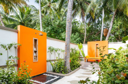 34 Beachfront Villas de 88 m2 nichées dans la végétation en bordure de la plage. Elles sont équipées d’une douche extérieure dans un jardin privé.