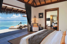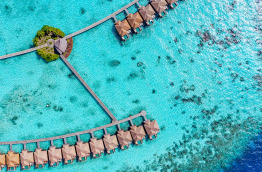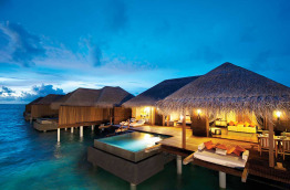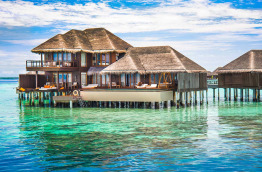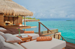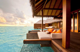14 Sunset Ocean Suites with Pool : le grand luxe au-dessus du lagon. Elles offrent une surface totale de 172 m2, avec une chambre spacieuse et un salon séparé, ainsi qu’un très grand espace extérieur pour profiter au mieux de la plus belle vue sur l’horizon et du coucher de soleil. Elles disposent aussi d’une piscine privative et de plusieurs hamacs au-dessus de l’eau.