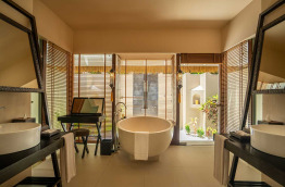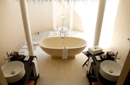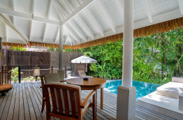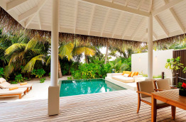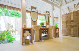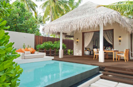 L’hôtel compte 120 villas et suites réparties en 11 catégories. La décoration intérieure est très contemporaine dans des tons beiges avec du bois, tout en conservant quelques touches de style maldivien et oriental. Chaque villa possède sa propre piscine privative (sauf les Garden Villas), et offre une très grande intimité dans un cadre magnifique.