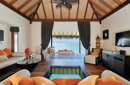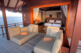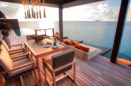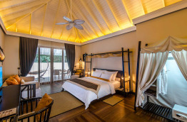 9 Sunset Lagoon Suites with Pool sont à la fois sur la plage et au-dessus du lagon. D’une superficie d’environ 156 m2, elles se trouvent sur la côte Ouest de l’île. Elles bénéficient d’une grande chambre, d’un salon, ainsi que d’une terrasse avec piscine privative à débordement, hamac en filet au-dessus du lagon et accès direct pour la baignade.