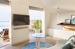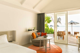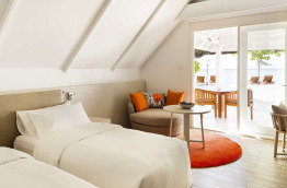 24 chambres Beach Pavilions (Pavillon Plage) de 60 m2, situées du côté Est et Ouest de l’île directement sur la plage avec un jardinet. Les bungalows sont composés de deux chambres mitoyennes, certaines sont communicantes.