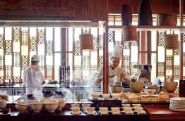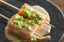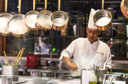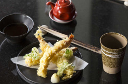 Sur pilotis, le restaurant Umami sert une cuisine japonaise, avec notamment sushis et teppanyaki où le chef préparera le repas sur une table chauffante devant vos yeux.