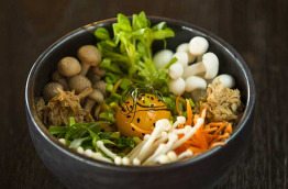 Pour dîner, le restaurant East Market, installé sur pilotis, au Nord-Est de l’île, propose une cuisine asiatique aux saveurs du Sri Lanka, Cambodge, Indonésie, Chine, Thaïlande.