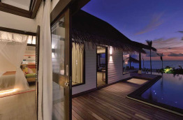 17 Earth Villas with Pool sont strictement identiques à l’intérieur, mais elles bénéficient en prime d’une jolie piscine de 8 m de long sur le côté de la villa. Elles ont également l’immense avantage de se trouver sur la plage du côté du soleil couchant. C’est idéal pour admirer le magnifique coucher de soleil ou profiter d’une superbe lumière de fin de journée.