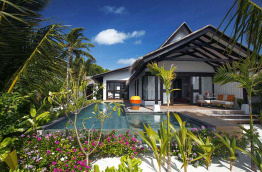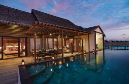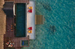 Situés sur la plage du côté Ouest de l’île, on trouve 10 Earth Pool Pavilion vraiment pensés pour les familles. Ce sont des suites de 285 m2 avec 2 chambres. La chambre principale est dotée d’un lit king-size et d’une salle de bains avec douche et baignoire extérieures. La chambre secondaire contient des lits jumeaux plus une petite salle de bains avec douche intérieure. Chaque suite bénéficie d’un grand salon intérieur, une terrasse aménagée sur le devant, face à la mer, plus une belle piscine de 35 m2 construite en L.