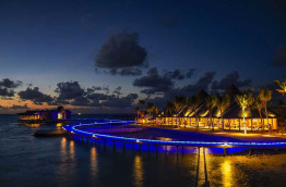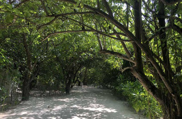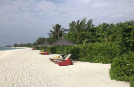 De l’extrémité des pilotis au Nord, à la grande plage à la pointe Sud de Maadhoo, l’ensemble fait 1 500 m de long. Des vélos sont mis à disposition dans chaque villa pour vous rendre d’un point à l’autre. Si vous voulez faire le tour de l’île principale à pied par la plage, il vous faudra environ 25 minutes. Les plages sont plutôt larges et descendent en pente douce dans le lagon. Les villas sont nichées dans une végétation assez dense composée de cocotiers, buissons épais de veloutiers verts. Quand vous traversez l’île à vélo, vous apprécierez la quantité d’arbres sauvages qui donnent de l’ombre et du charme à l’île.