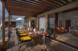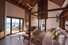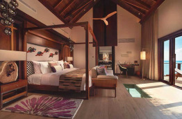 L’unique OZEN Residence est une superbe suite de 3 chambres qui se trouve à l’extrémité de la jetée des pilotis. Elle comprend deux grandes chambres de part et d’autre du salon-séjour, plus une petite chambre avec des lits jumeaux. Chacune a sa salle de bains privée, les grandes chambres ont une douche plus une baignoire, et la petite chambre uniquement une douche. La villa comprend également une cuisine équipée, plus une chambre pour du personnel si nécessaire, ainsi qu’une petite salle de fitness personnelle.