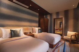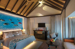 Ozen by Atmosphere at Maadhoo offre uniquement 90 luxueuses villas qui sont réparties à peu près pour moitié sur la plage ou sur pilotis. La décoration est sensiblement différente au niveau des tons utilisés, mais elles bénéficient des mêmes aménagements de confort. Les matériaux sont d’excellente qualité, et la décoration est moderne, chaleureuse et chic.