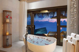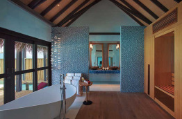 Les villas sont équipées de l’air conditionné, ventilateur, salle de bains avec double vasque, douche et baignoire, minibar, nécessaire à thé et café, accès internet Wi-Fi, et télévision écran plat LCD. En plus d’un coin salon intérieur, de confortables espaces de rangement sont disponibles, et sur votre terrasse, vous bénéficiez d’un sofa et de chaises longues.