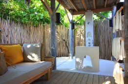 En ligne avec la philosophie de Six Senses, les matériaux utilisés sont naturels : bois et tissus de coton très colorés constituent les éléments de base.